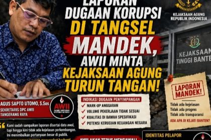 SERANG – Aliansi Wartawan Independen Indonesia (AWII) DPC Tangerang Raya kembali menyoroti lambannya penanganan laporan pengaduan masyarakat (DUMAS) yang telah disampaikan ke Kejaksaan Tinggi Banten. ...