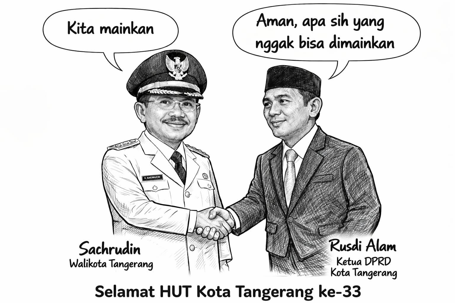 ( Tangerang ) Remaja berbakat kelahiran Kota Tangerang ,Mochamad Khoirul Miftah, Putra seorang jurnalis otodidak, membuat karya cukup menarik. Karikatur Walikota dan Ketua DPRD Kota Tangerang berjabat tangan