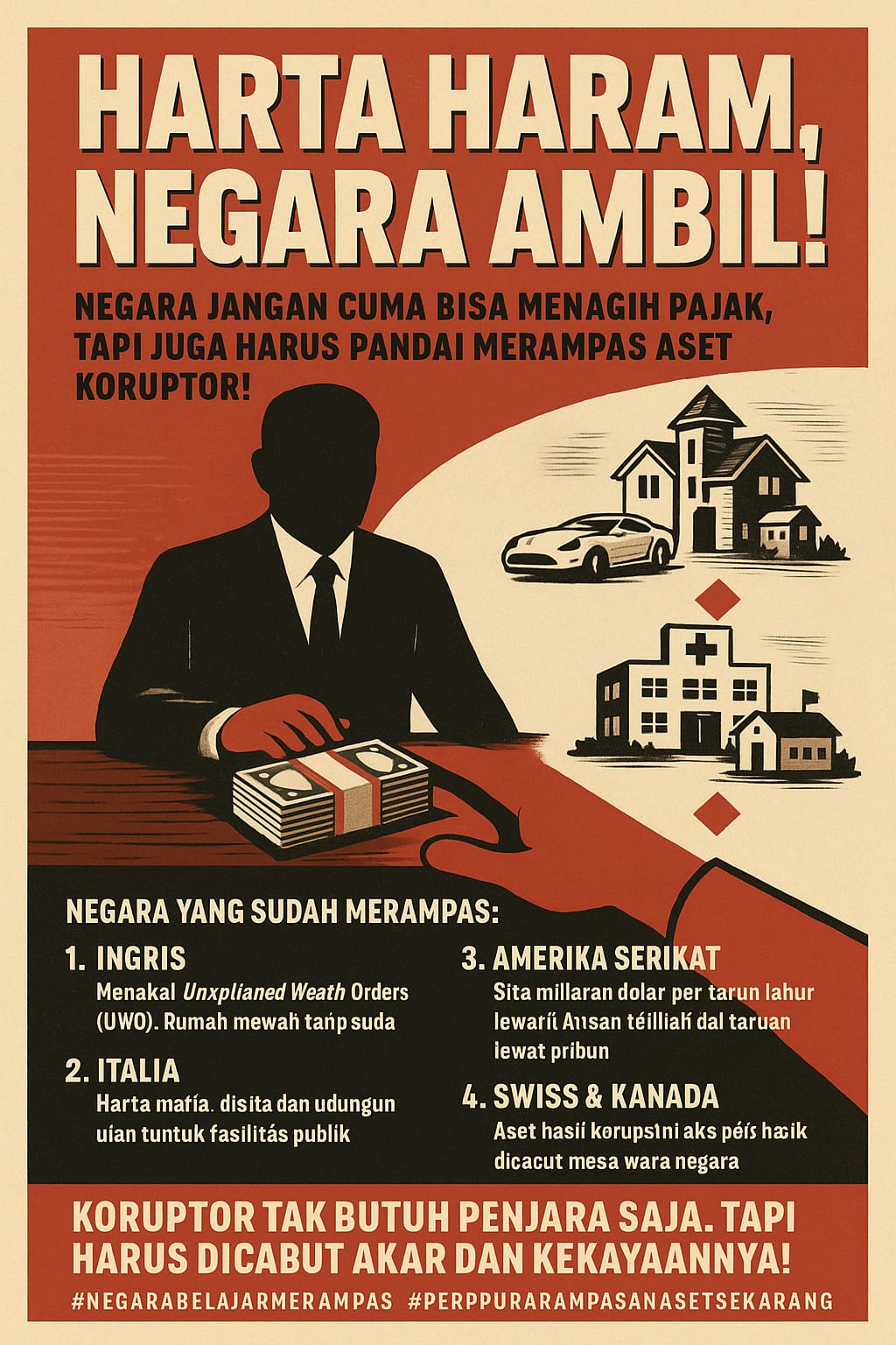 Perampasan aset bukan hanya alat hukum. Ia adalah cara negara menunjukkan bahwa ia masih punya tulang punggung. Bahwa ia tak tunduk pada mereka yang mengakali undang-undang, lalu tertawa di balik pagar tinggi.
