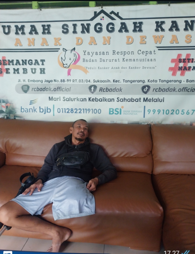 Tangerang -Warga tidak mampu dengan kondisi kaki diamputasi dan hidup sebatang kara mendatangi Rumah Singgah Yayasan Respon Cepat Badan Darurat Kemanusiaan ( RC Basak )